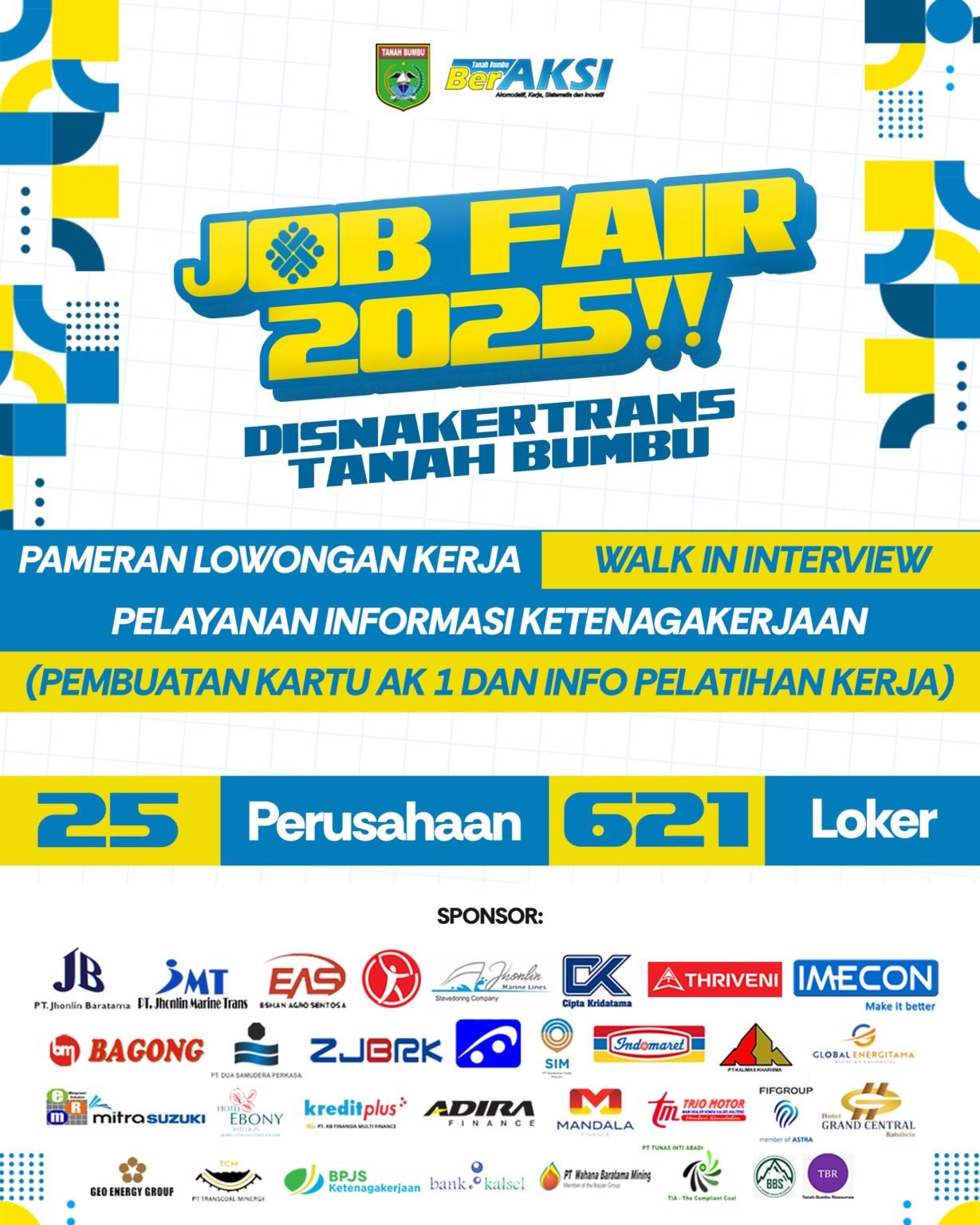 Dengan dukungan penuh dari Pemkab Tanah Bumbu, Job Fair 2025 diharapkan menjadi momentum strategis dalam mendorong penyerapan tenaga kerja lokal dan mendukung pembangunan ekonomi daerah.